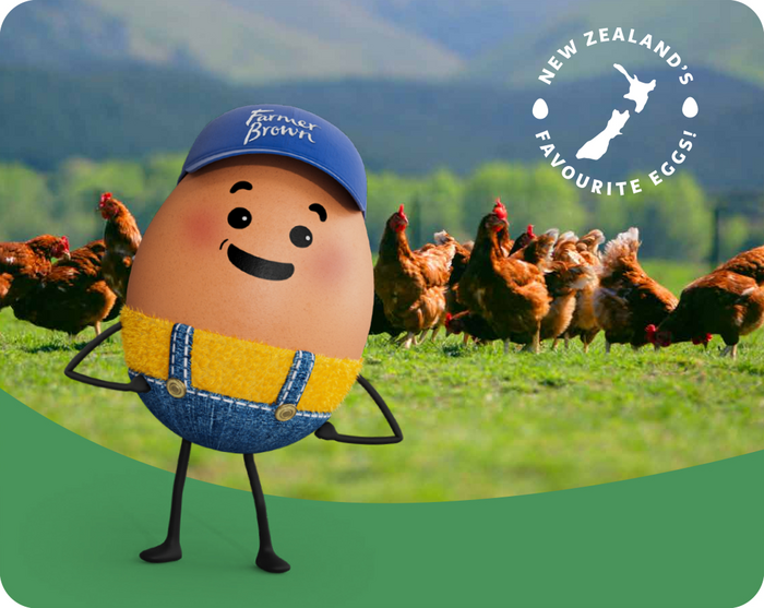 Raised on the open green fields of New Zealand, our FARMER BROWN hens enjoy a good life. They thrive in a clean, green environment, and that happiness brings natural goodness to your kitchen.